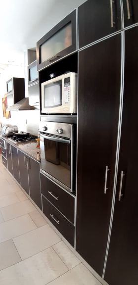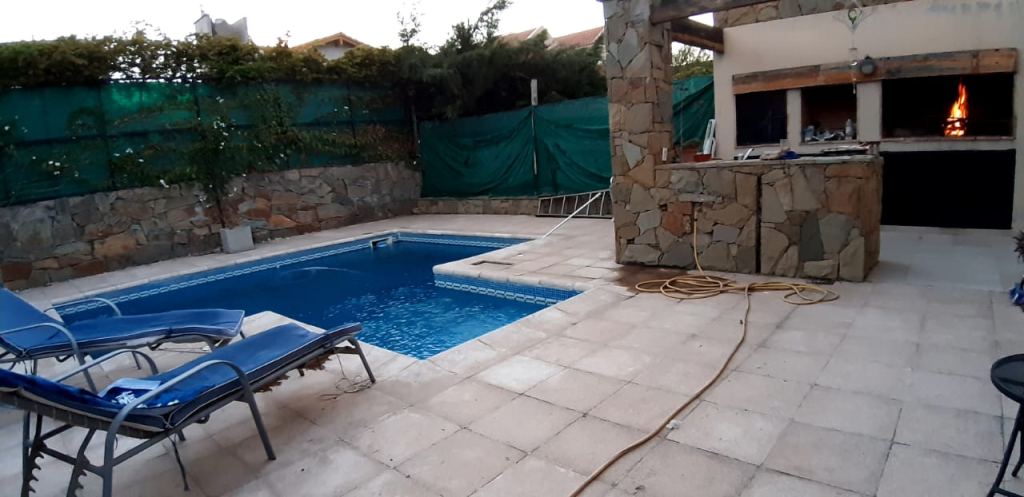 Consta de cocina equipada con comedor de diario separada living comedor principal amplio con vistas al jardin , ruego por aspersión galería, churrasquera piscina. Cochera pasante para 3 vehículos .