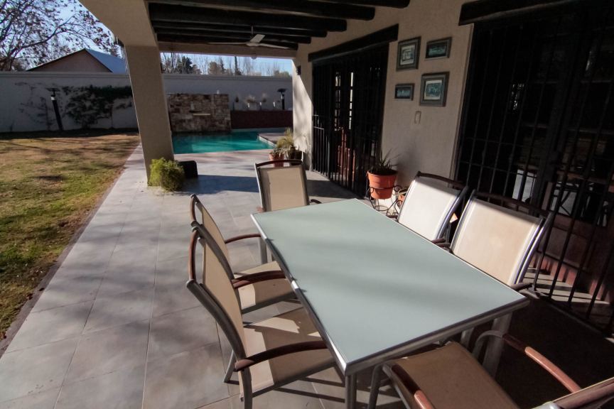 Espléndida propiedad categoría emplazada en una sola planta sobre un terreno de 1200 metros, con una superficie cubierta de unos 380 metros, una antigüedad de 12 años ,. Calefacción central, cocheras para varios autos, quincho, piscina, jardines.