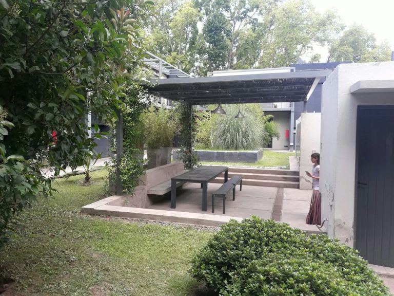 Complejo cerrado muy seguro con doble portón de ingreso automatizado. Jardines con riego por aspersión. Quincho con churrasquera y mesas. Baño.
