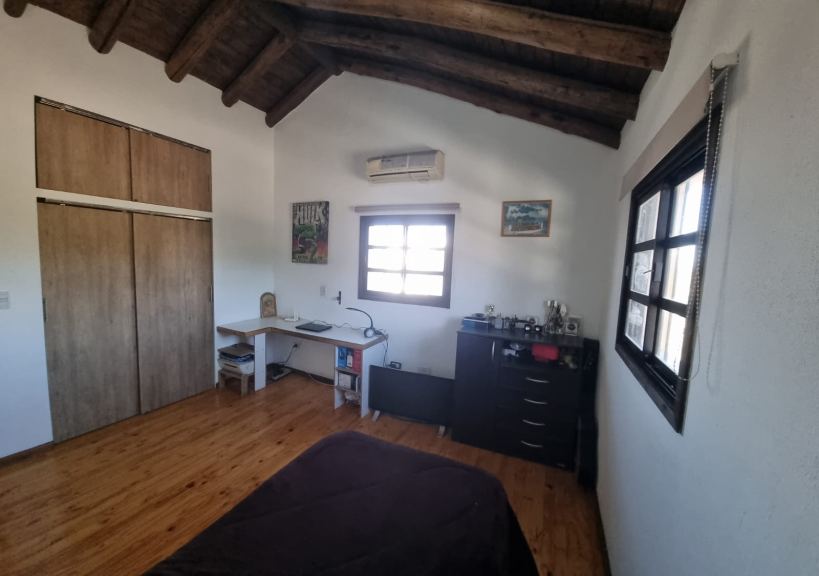 Hermosa propiedad ubicada al pie de la montaña. El inmueble se encuentra ubicado en el barrio Balcones de Cerro Arcor, pegado a Nuevas Quintas. Cuenta con Jardín delantero, amplia cochera, churrasquera en el jardín delantero. En el interior se encuentra la cocina/comedor integrada y un baño en planta baja. En planta alta están los dos dormitorios, muy amplios y luminosos, con un baño en suite y un balcón con hermosa vista a la montaña. El inmueble es totalmente eléctrico, cuenta con salamandra a leña y servicio de agua por cisterna.
