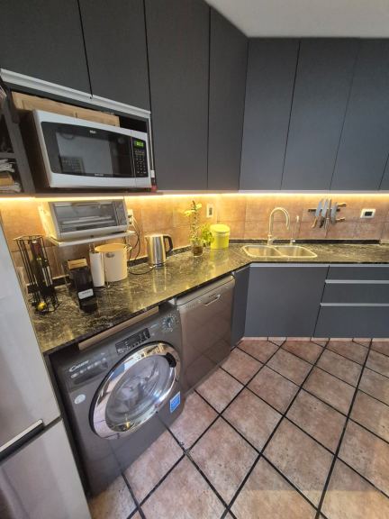Cocina amplia con muchos amoblamientos de cocina ; lavadero.
